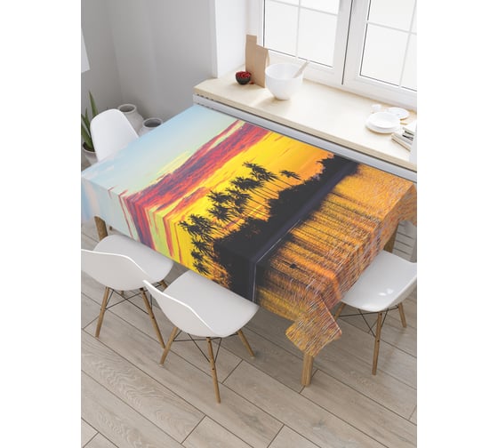 Прямоугольная скатерть JoyArty Пальмовый остров из сатена tc_21019_120x145