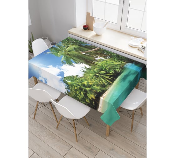 Прямоугольная скатерть JoyArty Пальмы на берегу пляжа из сатена tc_32526_120x145