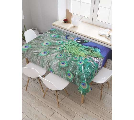 Прямоугольная скатерть JoyArty Павлиньи узоры из сатена tc_378531_120x145
