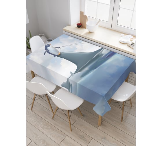 Прямоугольная скатерть JoyArty Пингвин верхом на акуле из сатена tc_38023_120x145 защищает поверхность стола от грязи, легко стирается и практически не мнется. Материал, из которого сшита скатерть, имеет рельефную текстуру, обладает высокой износостойкостью, подходит для кухни и выдерживает большое число стирок. Скатерть относится к категории фототекстиля, она поможет оформить кухню. Изображение наносится методом сублимационной печати, благодаря чему рисунок обладает яркостью и четкостью, что позволяет подобрать этот аксессуар в любом стиле и цветовой гамме. Скатерти представлены в двух типоразмерах.
