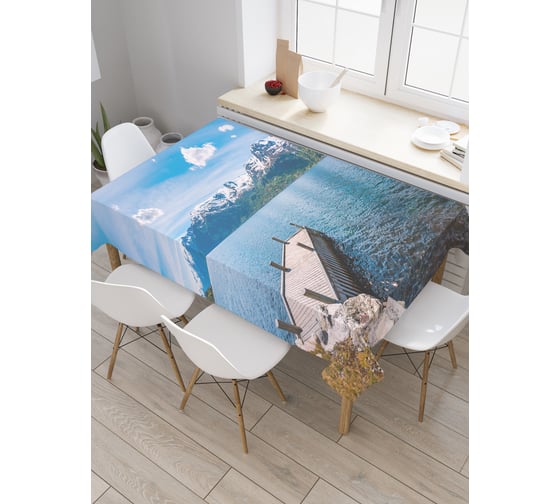 Прямоугольная скатерть JoyArty Пирс у заснеженных гор из сатена tc_30166_120x145
