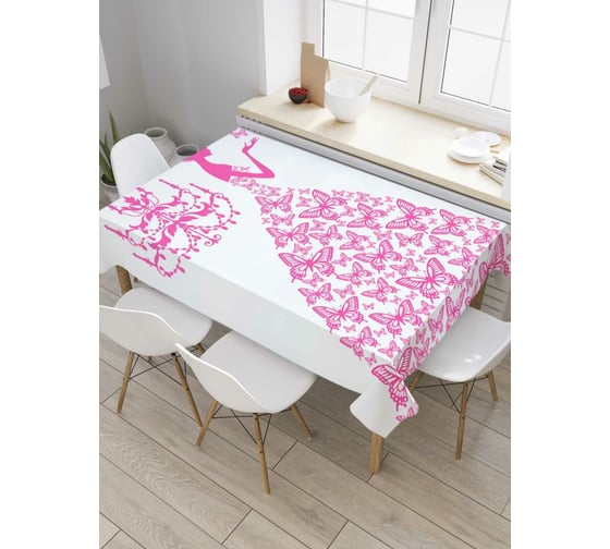 Прямоугольная скатерть JoyArty Платье с розовыми бабочками из сатена tc_8287_120x145
