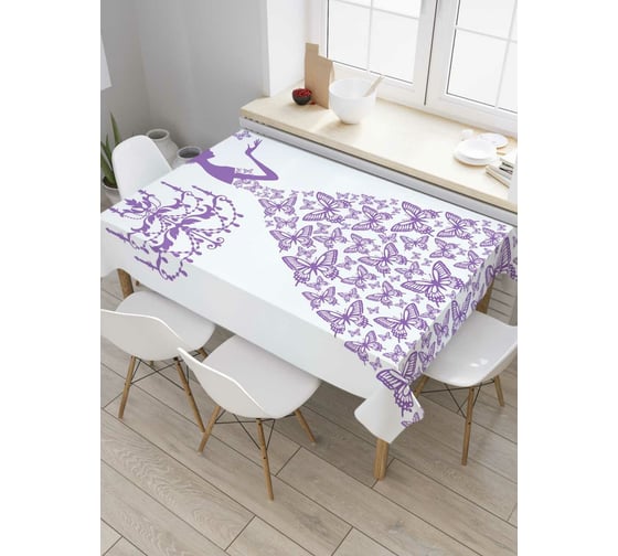 Прямоугольная скатерть JoyArty Платье с синими бабочками из сатена tc_8288_120x145