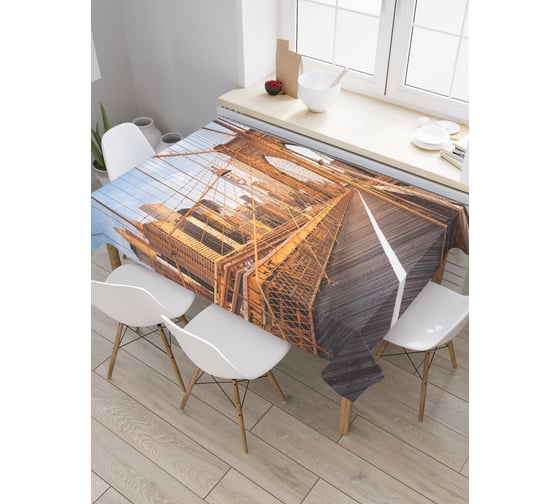 Прямоугольная скатерть JoyArty По мосту к городу из сатена tc_36807_120x145