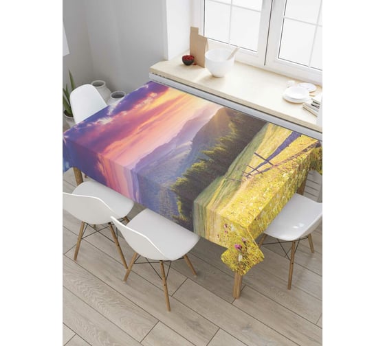 Прямоугольная скатерть JoyArty По утренним холмам из сатена tc_8236_120x145