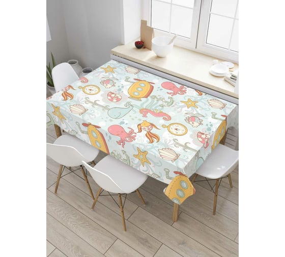 Прямоугольная скатерть JoyArty Подводные исследования из сатена tc_7231_120x145