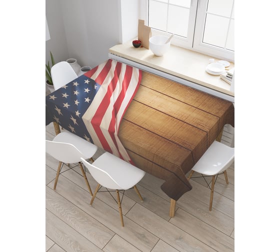 Прямоугольная скатерть JoyArty Покрывающий флаг из сатена tc_20710_120x145 защищает поверхность стола от грязи, легко стирается и практически не мнется. Материал, из которого сшита скатерть, имеет рельефную текстуру, обладает высокой износостойкостью, подходит для кухни и выдерживает большое число стирок. Скатерть относится к категории фототекстиля, она поможет оформить кухню. Изображение наносится методом сублимационной печати, благодаря чему рисунок обладает яркостью и четкостью, что позволяет подобрать этот аксессуар в любом стиле и цветовой гамме. Скатерти представлены в двух типоразмерах.