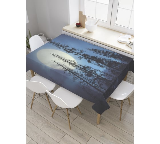 Прямоугольная скатерть JoyArty Полнолуние в лесу из сатена tc_35345_120x145