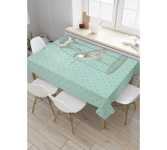 Прямоугольная скатерть JoyArty Птичка в клетке из сатена tc_72613_120x145