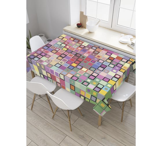 Прямоугольная скатерть JoyArty Радужные квадраты из сатена tc_28202_120x145