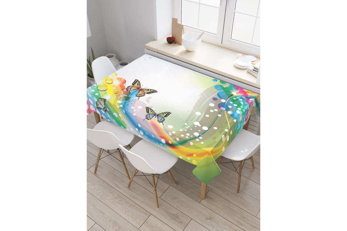 Прямоугольная скатерть JoyArty Радужный шлейф и бабочки из сатена tc_20929_120x145