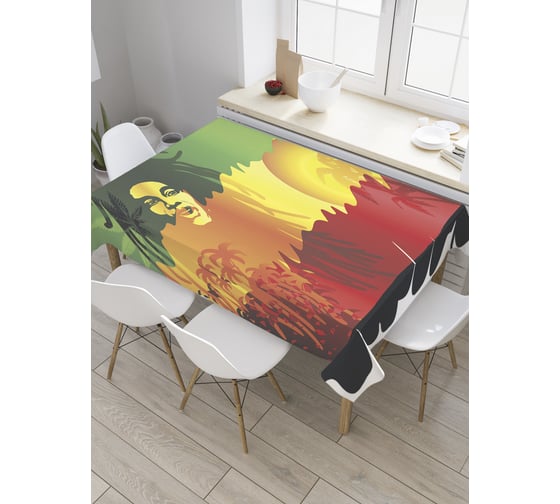 Прямоугольная скатерть JoyArty Растаман на флаге из сатена tc_36087_120x145