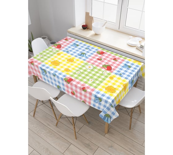 Прямоугольная скатерть JoyArty Разноцветные квадраты из сатена tc_29701_120x145