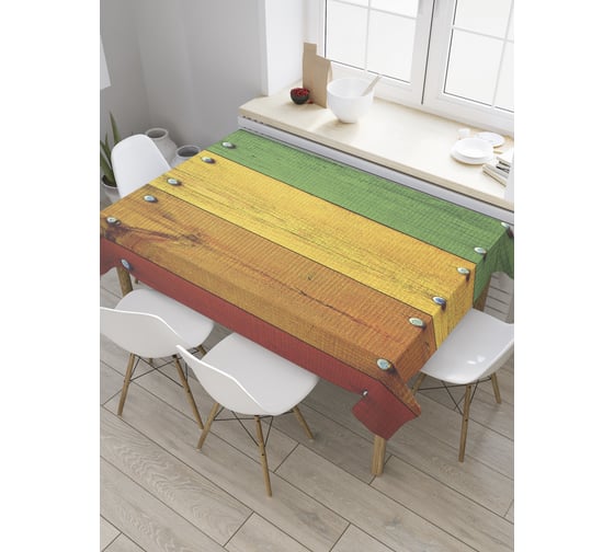 Прямоугольная скатерть JoyArty Разноцветные прибитые доски из сатена tc_31303_120x145