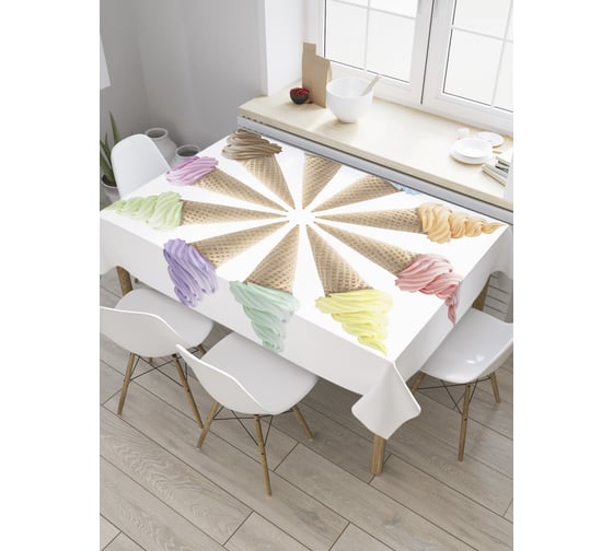 Прямоугольная скатерть JoyArty Разноцветные рожки из сатена tc_36334_120x145