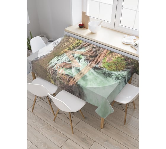 Прямоугольная скатерть JoyArty Река и скалы из сатена tc_5021_120x145