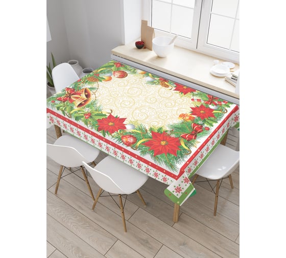 Прямоугольная скатерть JoyArty Рождественская рамка из сатена tc_29342_120x145