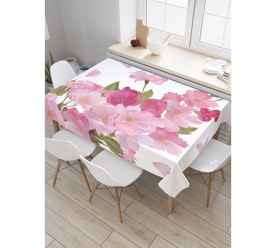 Прямоугольная скатерть JoyArty Розовые цветы из сатена tc_5501_120x145