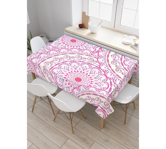 Прямоугольная скатерть JoyArty Розовые узоры из сатена tc_30360_120x145