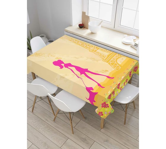 Прямоугольная скатерть JoyArty С собачкой по Парижу из сатена tc_37256_120x145