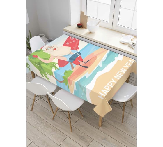 Прямоугольная скатерть JoyArty Санта на море из сатена tc_78645_120x145