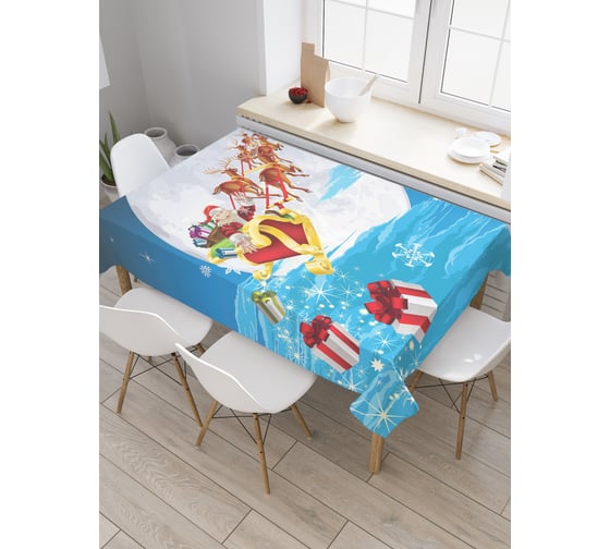 Прямоугольная скатерть JoyArty Санта спешит из сатена tc_20274_120x145