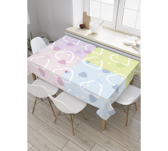 Прямоугольная скатерть JoyArty Сердца на цветных квадратах из сатена tc_31329_120x145
