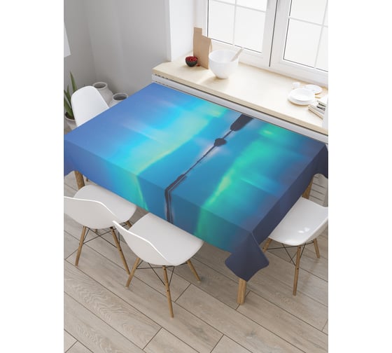 Прямоугольная скатерть JoyArty Северное сияние на фоне озера из сатена tc_29283_120x145