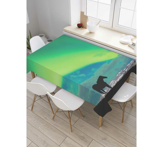 Прямоугольная скатерть JoyArty Северное сияние с лошадью из сатена tc_6631_120x145