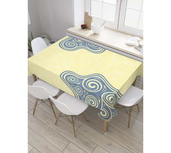 Прямоугольная скатерть JoyArty Синие узоры из сатена tc_31441_120x145