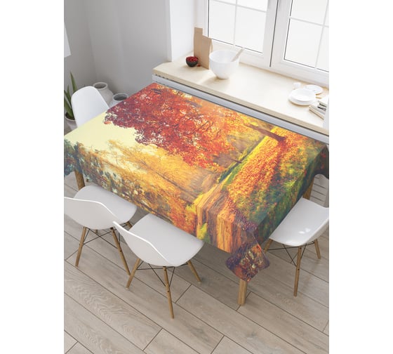 Прямоугольная скатерть JoyArty Сквозь осеннюю листву из сатена tc_37697_120x145