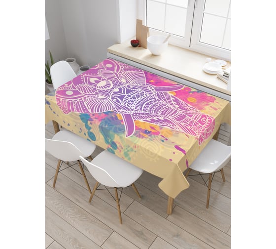 Прямоугольная скатерть JoyArty Слон в красках из сатена tc_30073_120x145