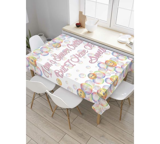 Прямоугольная скатерть JoyArty Смайлики и надпись из сатена tc_7341_120x145