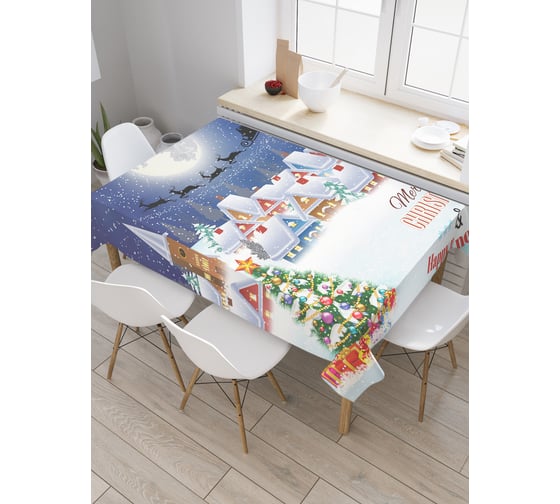 Прямоугольная скатерть JoyArty Снежный городок из сатена tc_20307_120x145
