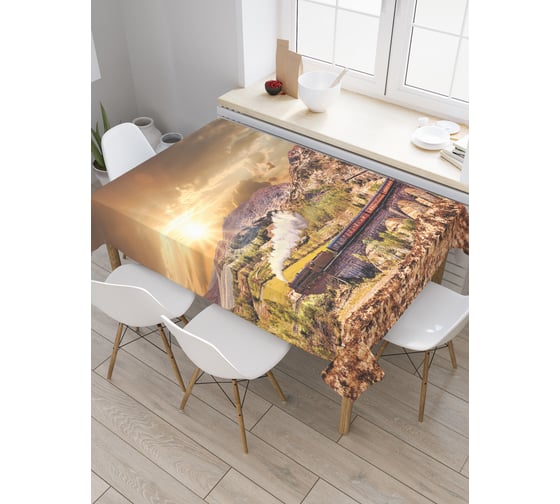 Прямоугольная скатерть JoyArty Солнечный городок из сатена tc_23724_120x145