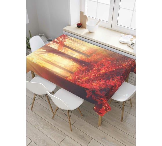 Прямоугольная скатерть JoyArty Солнечный лесной туман из сатена tc_6475_120x145