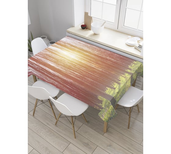 Прямоугольная скатерть JoyArty Солнце в лесу из сатена tc_8854_120x145