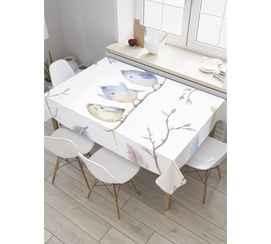 Прямоугольная скатерть JoyArty Соловьиное трио из сатена tc_28546_120x145