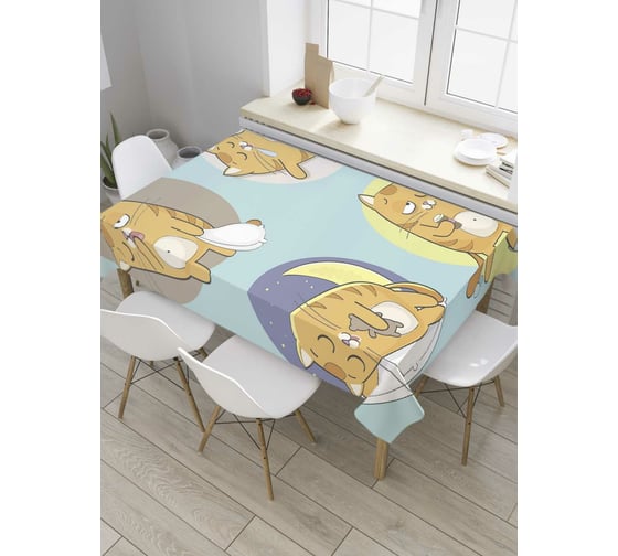 Прямоугольная скатерть JoyArty Сонный котик из сатена tc_9649_120x145