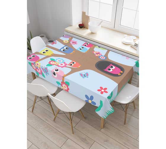 Прямоугольная скатерть JoyArty Совиное жилище из сатена tc_3164_120x145