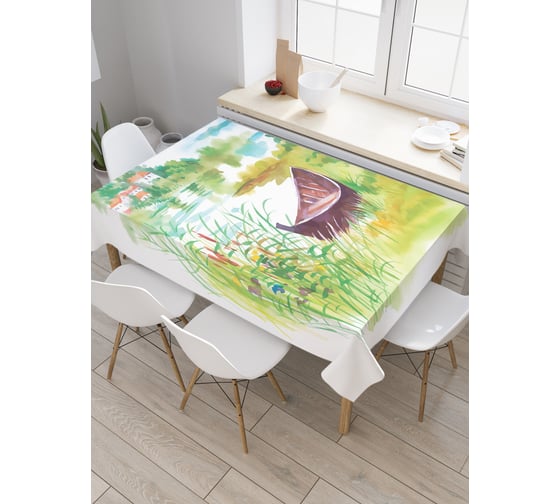 Прямоугольная скатерть JoyArty Спрятанная лодка из сатена tc_19304_120x145