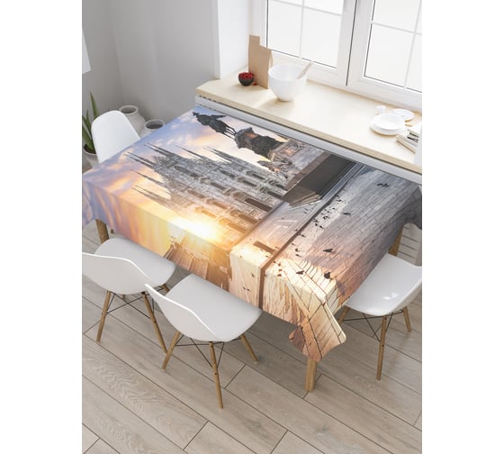 Прямоугольная скатерть JoyArty Статуя на площади из сатена tc_20190_120x145