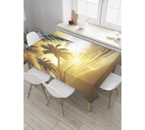 Прямоугольная скатерть JOYARTY Вечерние пальмы над берегом из сатена tc_31265_120x145