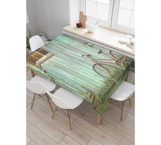 Прямоугольная скатерть JOYARTY Велосипед в деревне из сатена tc_9784_120x145