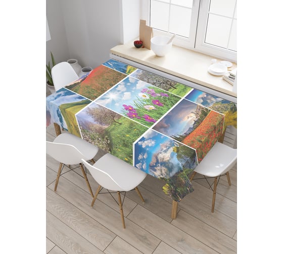Прямоугольная скатерть JOYARTY Весенний коллаж из сатена tc_18463_120x145