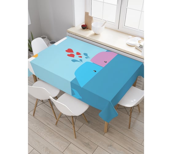 Прямоугольная скатерть JoyArty Влюбленные киты из сатена tc_21930_120x145