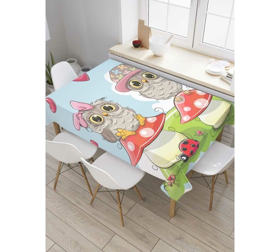 Прямоугольная скатерть JoyArty Влюбленные на мухоморчиках из сатена tc_378909_120x145