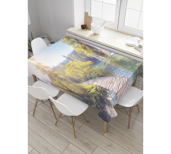 Прямоугольная скатерть JoyArty Водопад и мостик из сатена tc_28478_120x145
