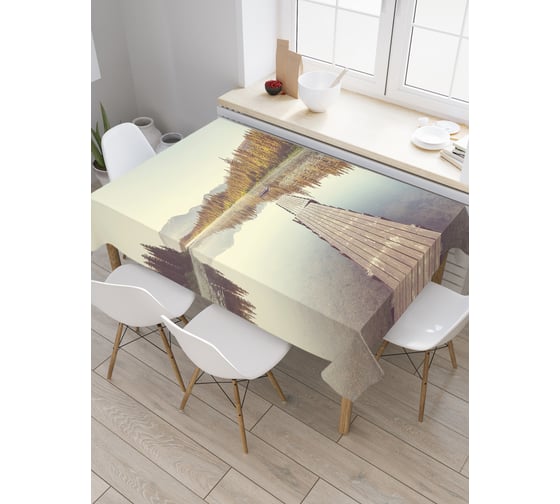 Прямоугольная скатерть JoyArty Заброшенный помост из сатена tc_37665_120x145