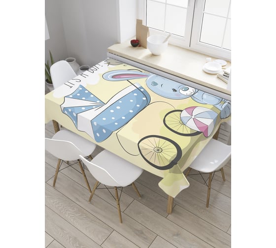 Прямоугольная скатерть JoyArty Зайчик у коляски из сатена tc_35097_120x145